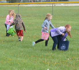 With each age group of children assigned a field, egg hunters scattered at the starting signal and began scooping up the bright-colored plastic eggs, some with candy inside and others with tickets for prizes at the shelter house. At the shelter, free donuts awaited egg hunters and their adults.